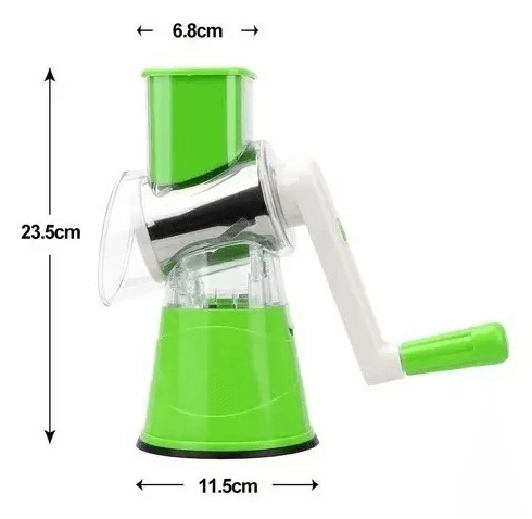 Con nuestro Rallador Cortador Giratorio, la preparación de tus ingredientes se convierte en una tarea rápida y sencilla. Olvídate de las largas horas picando y rallando manualmente.